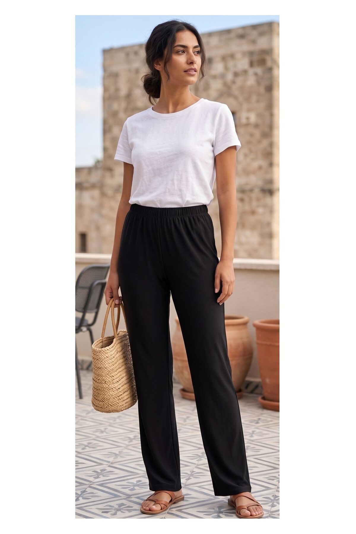 Materyal Viskon Karışımlı Kumaş Tipi Örme Paça Tipi Düz Paça Bel Normal Bel Kalıp Regular Desen Düz Renk Siyah Cep Cepsiz